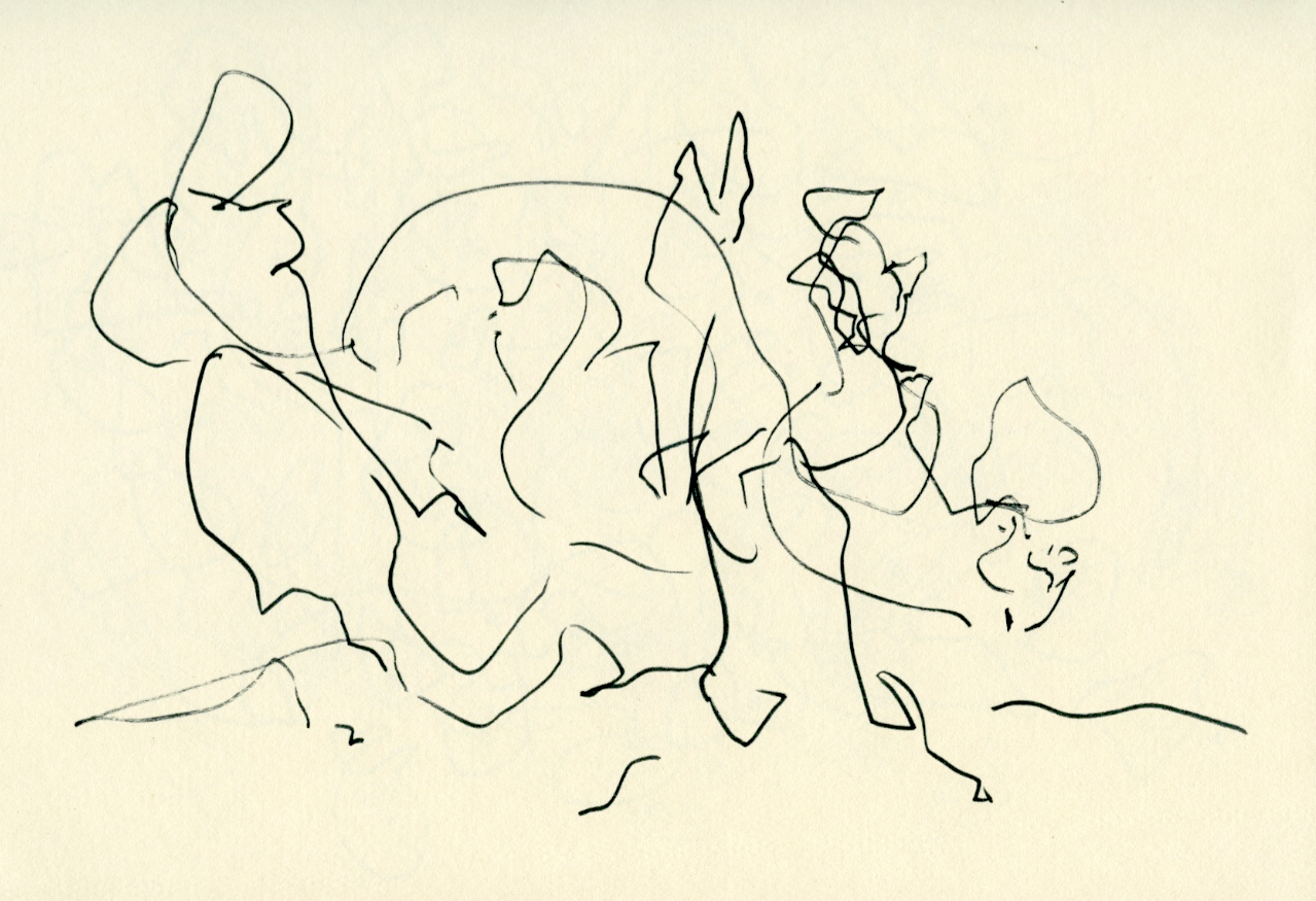 Puis tous les personnages sont devenus des ratures, des mouvements de cisailles qui ne tenaient debout qu’en tournant sur eux-mêmes comme des derviches ou des toupies enfantines.